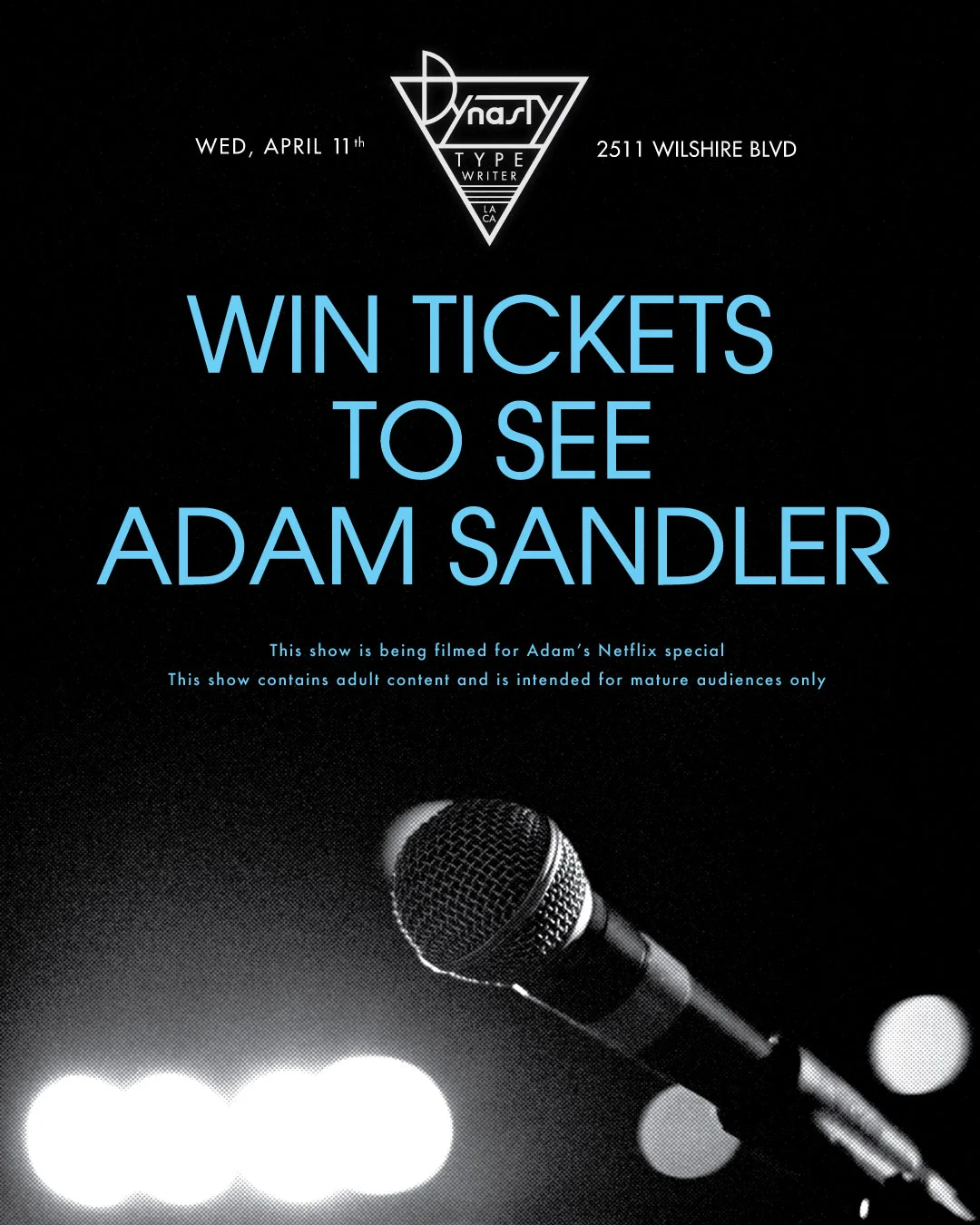 Join the Dynasty Mailing List and you could win Tickets For Two We're giving away tickets to the SOLD OUT Adam Sandler show on Wed, April 11th. To enter, all you gotta do is sign up to our mailing list where you'll get intel on some of LA's best entertainment, including:• Early Access To Sell Out Shows• Exclusive Behind-The-Scenes Funnies + Content• Insider Discounts on Select Shows + Items Email Address SUBMIT Dynasty Typewriter respects your privacy. We promise to never share your email address with any person or organization and only send you Dynasty related emails. Thank you! Dynasty Typewriter At the Hayworth Theatre